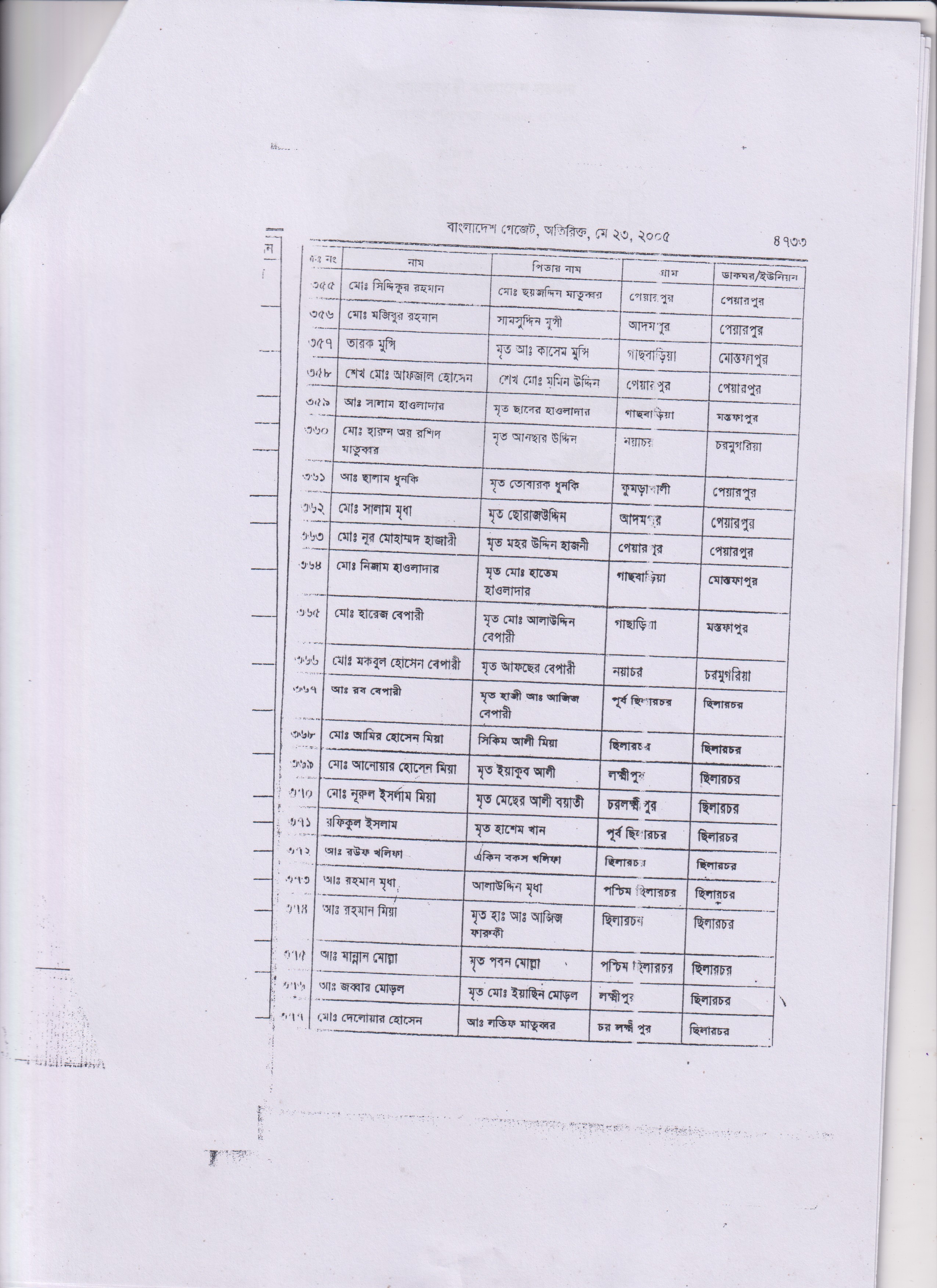 | ৪ | আবদুর রব | লাল মুক্তিবার্তা ০১১০০১০০২৫, বেসামরিক গেজেট ৩৬৭ | | 8 | ছিলারচর | | | দেখুন |